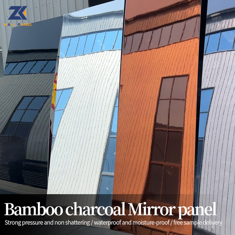 Зеркальная панель из бамбукового древесного угля PET, текстура поверхности в точности повторяет зеркальную, это декоративная панель из деревянного шпона, которая является водонепроницаемой, влагостойкой, износостойкой и устойчивой к царапинам, а также легко гнется. Сочетая в себе очаровательное очарование зеркала с природными преимуществами бамбукового угля, зеркальные панели из бамбукового угля поднимают ваше жилое пространство на новую высоту, гармонизируя красоту и функциональность, как никогда раньше. Раскройте визуальную привлекательность и наслаждайтесь привлекательной отражающей поверхностью, которая расширяет ваше жилое пространство. Наши зеркальные панели из бамбукового угля легко улавливают и играют со светом, создавая иллюзию открытости и величия. Превратите свою комнату в храм элегантности и изысканности. Зеркальные настенные панели из бамбукового угля не только очищают воздух, поглощая нежелательные запахи и загрязняющие вещества, но и создают спокойную атмосферу, способствующую расслаблению и благополучию. Ощутите спокойствие, которое могут обеспечить только природные элементы.