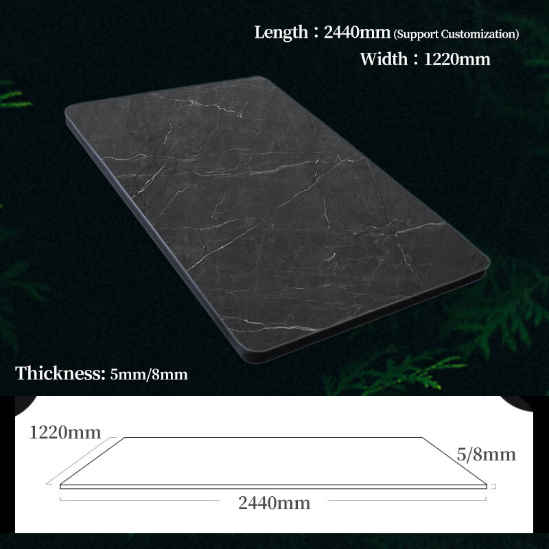 Мраморные бамбуково-угольные деревянные панели, по внешнему виду и текстуре в точности повторяют мрамор, водонепроницаемы, влагостойки, износостойки, устойчивы к царапинам и легко гнутся по краям, что делает их идеальными декоративными панелями из шпона. Бамбуково-угольные деревянные мраморные стеновые панели - это экологически чистые панели из натурального бамбукового угля, которые обеспечивают «отсутствие запаха», полностью устраняя недостатки традиционной отделки, связанные с экологичностью и содержанием формальдегида. Бамбуково-угольные стеновые панели, благодаря добавлению компонентов бамбукового угля, обладают экологически чистыми свойствами. Этот тип стеновых панелей имеет несколько ключевых особенностей. Во-первых, он очень прочный, волокна ПЭТ-мрамора очень прочные и износостойкие, способны выдерживать удары и не подвержены царапинам или вмятинам. Кроме того, стеновая панель из бамбукового угля и ПЭТ-мрамора обладает экологическими свойствами, в которых использование бамбукового угольного шпона добавляет экологичности стеновой панели, а также удаляет запахи в помещении, такие как формальдегид. Мраморный волокнистый рисунок и бамбуковый угольный деревянный шпон придают стеновым панелям уникальную эстетику, которая может добавить нотку стиля и элегантности мебели, делая их идеальными для современного легкого люкса, а также для различных других стилей отделки.