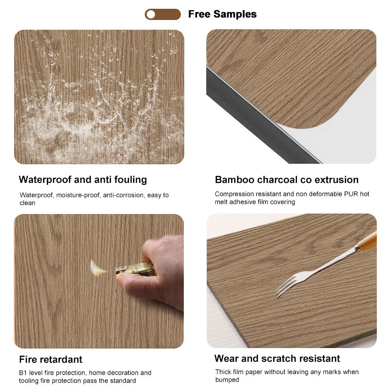 Шпон из бамбука изготавливается по высокотехнологичной технологии, представляя собой уникальное сочетание волокон бамбука и перерабатываемого нового стабильного пластика. Он на 100% экологически чистый, водонепроницаемый/огнестойкий, гибкий и не деформируется, что делает его лучшим выбором для внутренней отделки. Древесный шпон изготавливается из натурального дерева или путем строгания древесины, обладает естественной текстурой, выраженным ощущением массива дерева и трехмерностью, четкими уровнями, теплый зимой и прохладный летом, что соответствует требованиям к жизни и декоративным потребностям человека. Использование стеновых панелей из древесного шпона может добавить ощущение естественности и уюта в интерьер, создавая ощущение комфорта и естественности. Стеновые панели из древесного шпона - это разновидность декоративных панелей из древесного шпона, которые устойчивы к износу и царапинам, а края легко гнутся. Их можно устанавливать непосредственно на грубую стену, дизайн прост и удобен, а обслуживание очень простое, что экономит много времени на установку. В ходе испытаний, проведенных национальными организациями по тестированию, панель достигла уровня экологической безопасности E0 и уровня пожарной безопасности B.