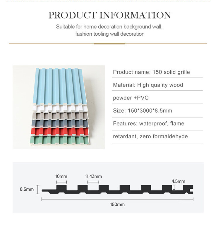 Деревянный пластиковый флейтированный стенный панель - это идеальное сочетание современного дизайна и вечной эстетики.Он сделан из высококачественного деревянно-пластикового композитного материала с уникальной и привлекательной плетённой текстурой, которая имеет элегантный дизайн и современное ощущениеДеревянные пластмассовые панели для стен выдерживают давление, высокую прочность, устойчивость к гниению, насекомым и деформации, что делает их красивыми и долговечными.Он достаточно универсален, чтобы использоваться в качестве общего украшения стен или акцента в определенных областяхПростая в установке и обслуживании, модульная конструкция настенных панелей облегчает процесс монтажа.в то время как легко очищаемая поверхность облегчает обслуживание. Плоты из WPC также могут улучшить акустическую производительность и уменьшить уровень шума, создавая тихую и комфортную среду для жизни или работы.Вы можете добавить современный шарм и дополнить современный образ жизниНаконец, современная привлекательность флатованных стеновых панелей из ПВХ улучшает дизайн интерьера и обеспечивает долговечные результаты, которые выдерживают испытание временем.