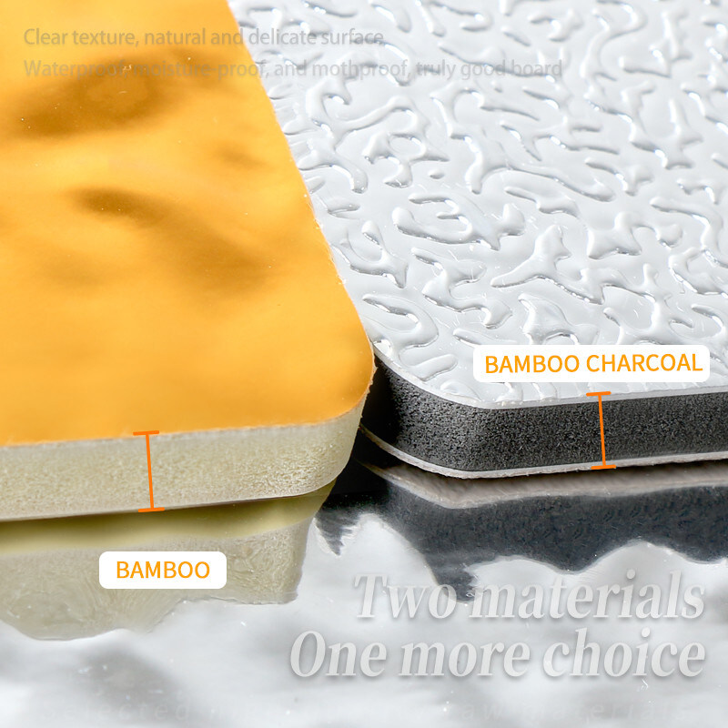 Панели для стен из бамбукового волокна с текстурой ряби на воде изготовлены из экологически чистых бамбуковых волокон, которые одновременно элегантны и экологичны. Использование возобновляемых материалов соответствует современным концепциям и оказывает положительное влияние на окружающую среду. Настенные панели имеют ПВХ-покрытие для дополнительной защиты от влаги, обеспечивая отличную водостойкость. Слой ПВХ также повышает долговечность и простоту обслуживания панелей. Настенные панели разработаны для практичности и устойчивы к воде и влаге. Они эффективны против воды, обеспечивая долговечность и предотвращая проблемы, связанные с влагой, что делает их идеальными для таких помещений, как ванные комнаты и кухни.Поднимите дизайн интерьера на новый уровень с элегантностью и практичностью, создавая атмосферу, отражающую уникальный стиль и усиливающую очарование пространства. Дизайн с текстурой ряби на воде в сочетании с огнестойкими и водонепроницаемыми свойствами улучшает атмосферу интерьера и обеспечивает визуальную привлекательность и практичность.